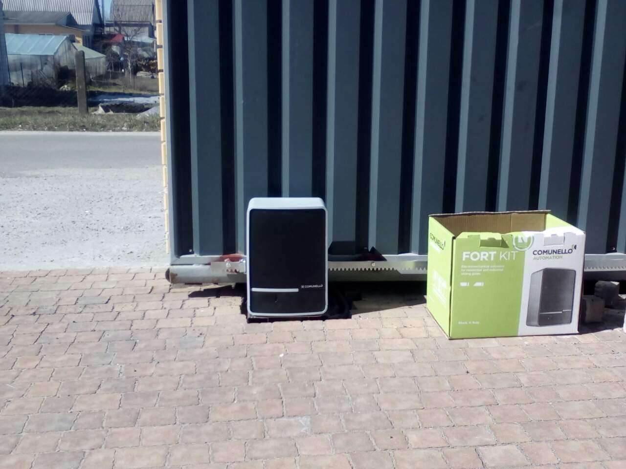 Процес встановлення двигуна FORT Comunello на відкатні (зсувні) ворота з приваркой зубчастої рейки.