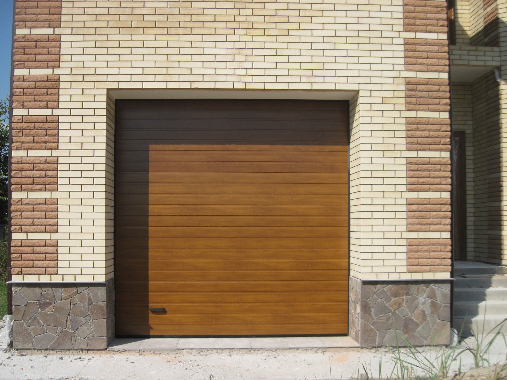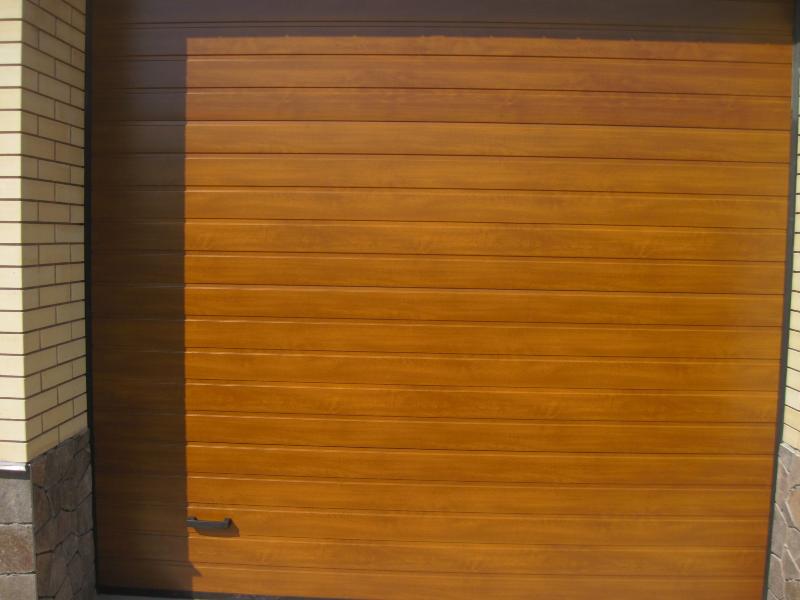 Ворота гаражні секційні, панель s-гофр золотий дуб.